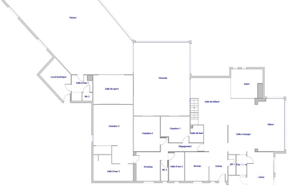 L’espace bien-être, véritable écrin de sérénité, se compose d’une piscine intérieure chauffée de 15 x 5 mètres, soulignée par une superbe pierre de Jérusalem qui confère à l’ensemble une ambiance élégante et chaleureuse. Salle d’eau, sanitaire et local technique complètent cet espace lumineux de 162 m².