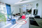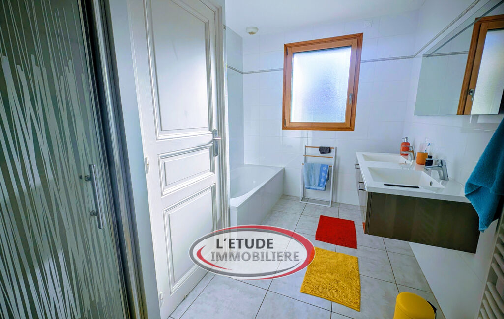 D'une surface habitable de 113 m2, elle offre des volumes agréables et une distribution fonctionnelle. Elle se compose d'un salon/séjour, d'une cuisine aménagée et équipée (plaque, hotte, four), de trois chambres, d'une salle de bains équipée d'une douche, d'une salle d'eau, ainsi que de WC séparés. Un garage et un débarras viennent compléter le bien.