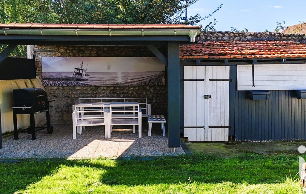 L'extérieur propose un joli petit jardin avec pergola, 2 abris jardin, une cour permettant de stationner 2 véhicules et une dépendance / buanderie de 13m².