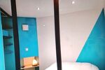 Une porte à galandage sépare un coin nuit avec lits superposés.