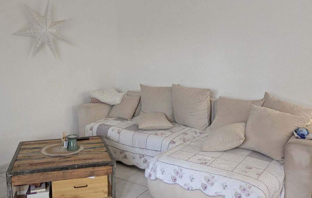 La maison s'ouvre sur une salon-séjour lumineux, suivi d'une cuisine équipée fonctionnelle.