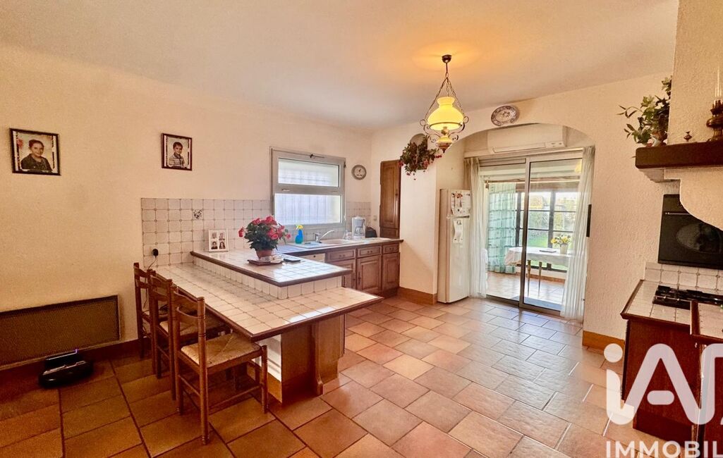 Une grande cuisine équipée en chêne massif semi ouverte sur le séjour/salon, une véranda et une cuisine d'été complète ce bien.