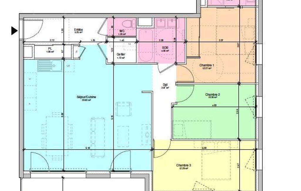 - Espace de vie de 33,83m² environ