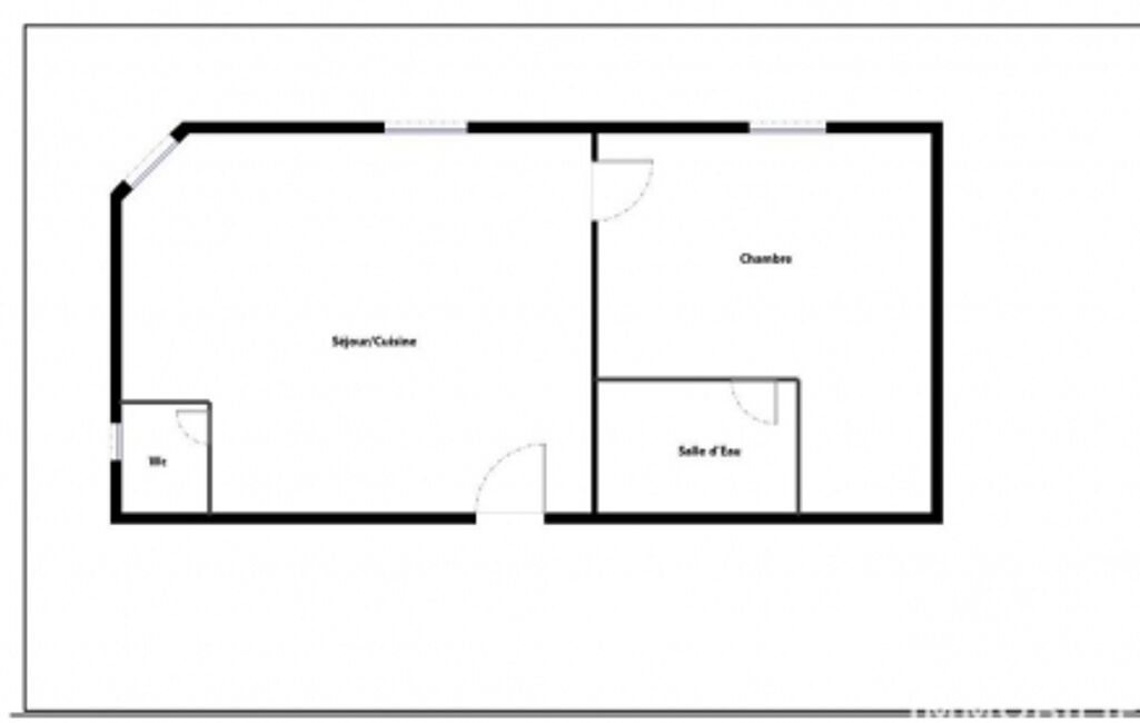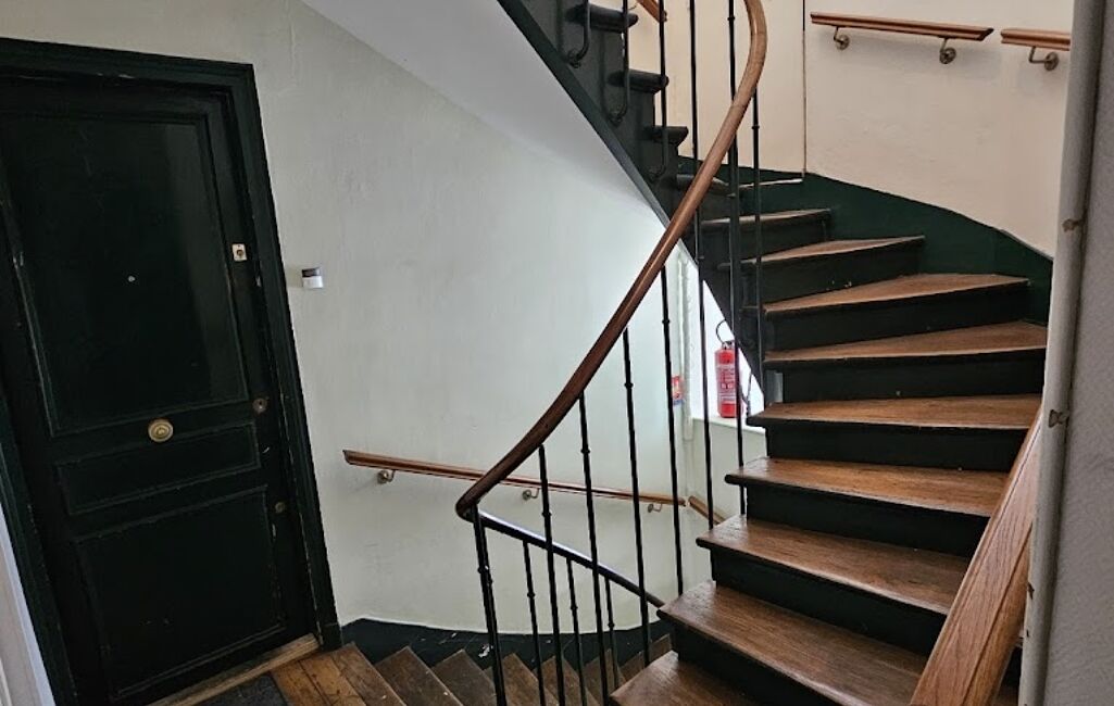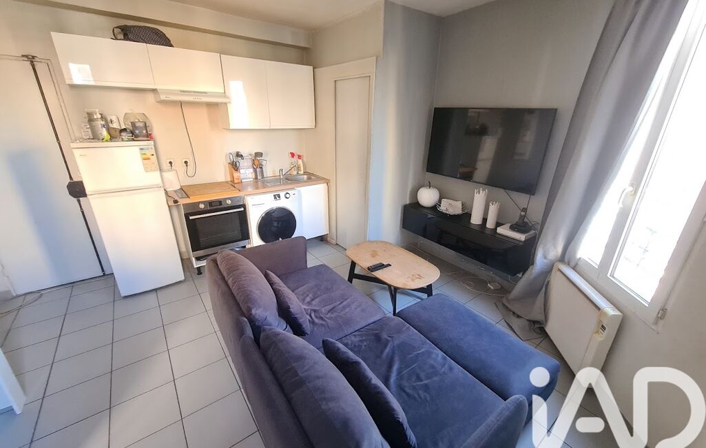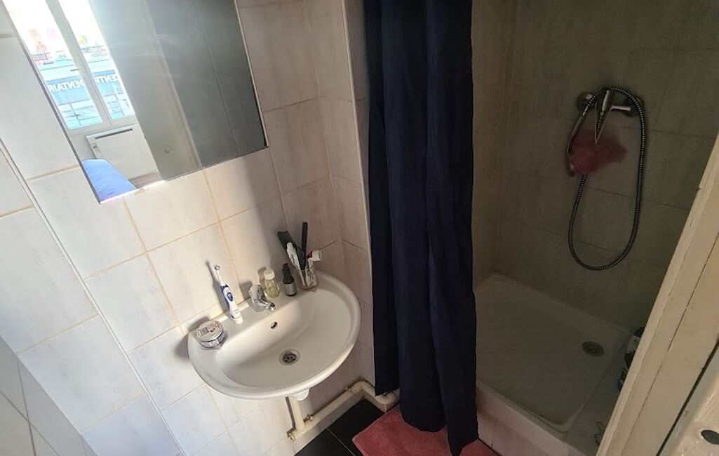 Appartement de type F2 au 1er étage d'un immeuble ancien sécurisé de 2 étages, il offre un agencement optimisé avec une pièce de vie lumineuse avec un coin cuisine fonctionnel, une chambre avec salle de douche et WC séparés.