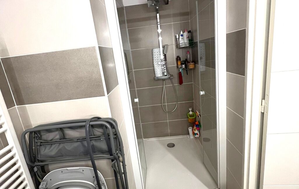 - Salle d’eau avec douche 90x120, grande vasque et rangements.