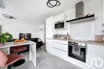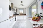 • grand séjour très LUMINEUX, CLIMATISÉ avec sa cuisine ouverte, très joliment aménagée et équipée avec four, lave-vaisselle, plaques induction, hotte, réfrigérateur/congélateur, lave-linge intégré, nombreux rangements, plan de travail en L, refaite récemment, avec son espace repas