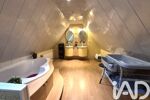 Deux chambres confortables, dont une suite parentale. La suite parentale dispose d’un étage supplémentaire avec grande salle de bain, double vasque, baignoire d’angle et toilette.