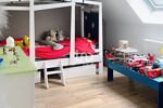 À l'intérieur, vous trouverez 5 chambres dont une en rez-de-chaussée pour une vie de plain pied possible et idéale pour accueillir toute la famille . La maison dispose de 2 salles de bain modernes, d'une cuisine ouverte sur le séjour avec ilot central , aménagée et équipée .