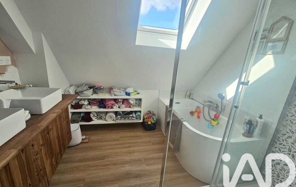 A l'étage 4 belles chambres spacieuses et lumineuses, 1 agréable sdb avec baignoire douche et meuble double vasque. WC suspendu séparé.
