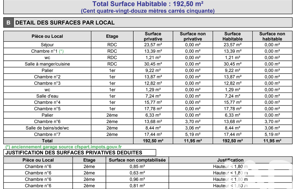 - Surface habitable : 192 m²