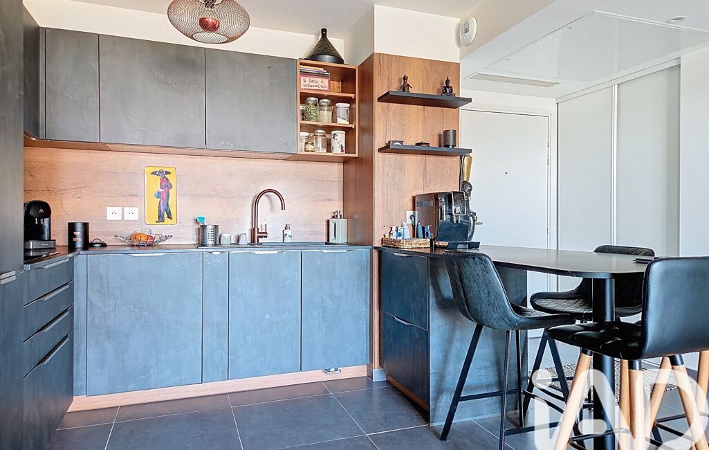 Prestations haut de gamme avec volets roulants électriques, appartement entièrement climatisé en gainable, cuisine schmidt.