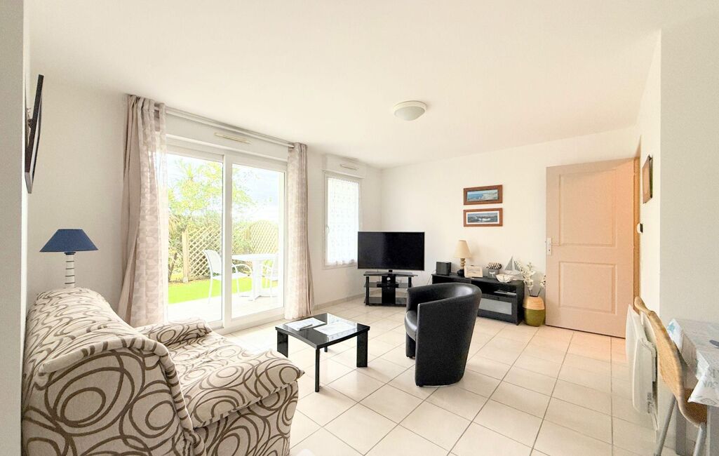 Au rez-de-chaussée d'une copropriété de 2009 renfermant 6 logements, l'appartement comprend une grande entrée avec dressing de 3m2, 2 chambres de 10m2 et 12m2, une pièce de vie de 27m2 avec cuisine aménagée ouverte, prolongé par une terrasse en rez-de-jardin de 8m2 et un jardin privatif. Une salle de douche de 4m2 et un WC séparé complètent l'appartement.
