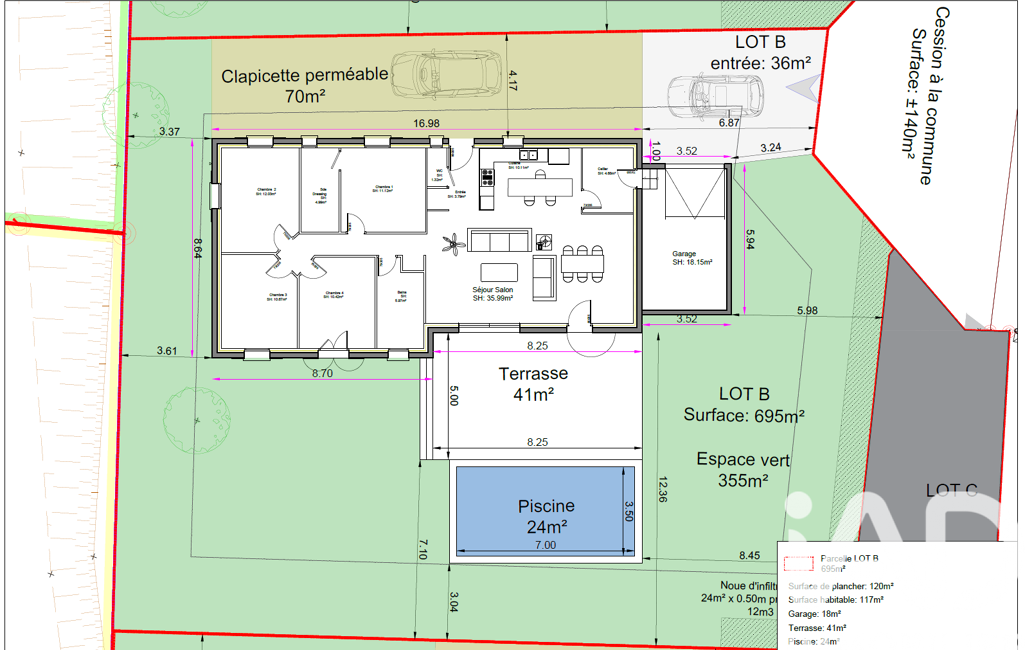 • Superficie terrain : 700 m²