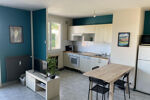 Cuisine entierement équioée, donnant sur pièce à vivre avec grand balcon plein-sud,1 chambre avec grand placard, salle de bain avec baignoire, vasque et wc. 1 Cave + parking privé à la résidence.Charmant petit parc.