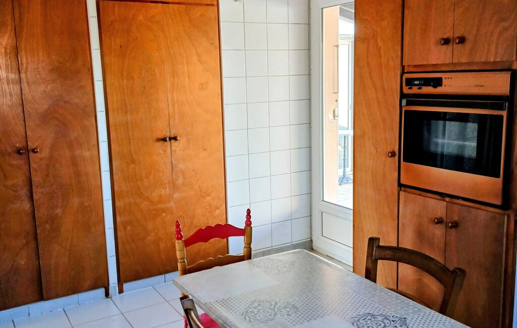 Elle se compose d’une cuisine séparée, d’un salon-séjour lumineux équipé d’une cheminée et d’une climatisation réversible, ainsi que d’un hall d’entrée de 10 m² avec placard.