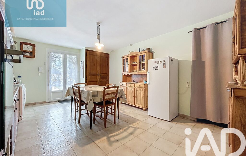 Cuisine 22m², salle à manger 36m² et salon 33 m² avec plancher apparent à la française et cheminée décorative.