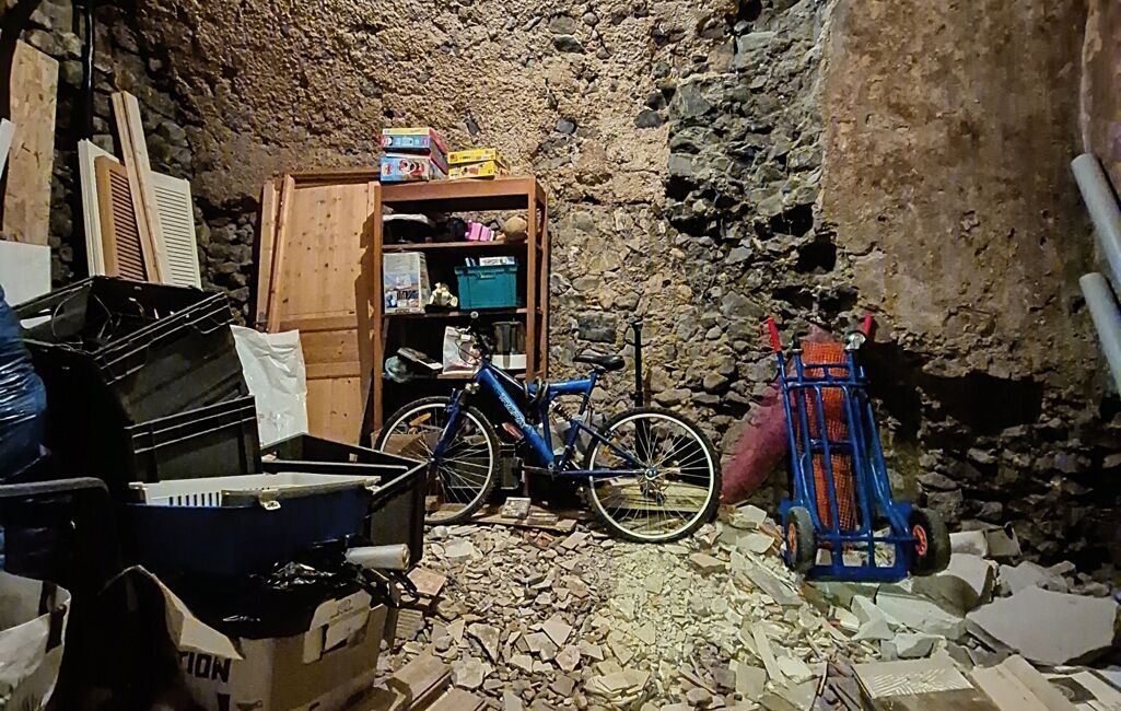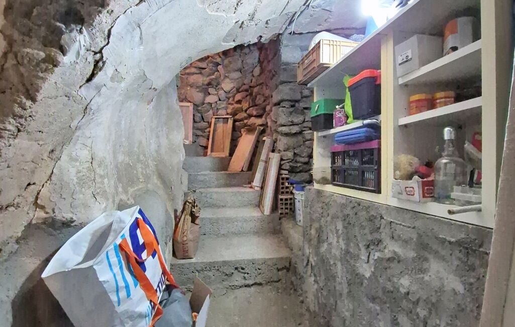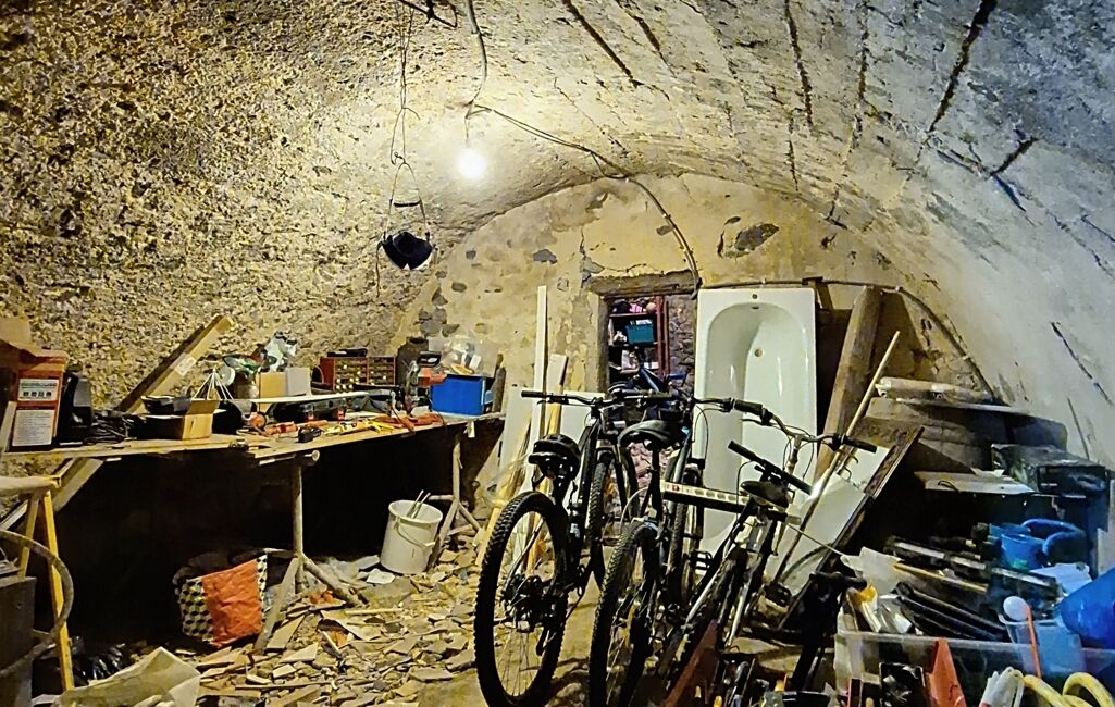 Élevée sur 3 grandes caves en enfilade d'un total de 43m2, cette maison de village en pierre se compose comme suit :