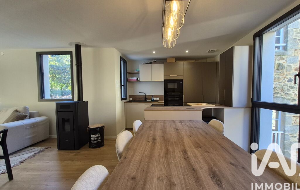 Le niveau principal accueille une pièce de vie baignée de lumière d’environ 35 m², avec triple exposition, organisée autour d’un poêle à bois et ouverte sur une terrasse donnant sur un jardin clos de murs en pierres, paisible, au calme et sans vis-à-vis.