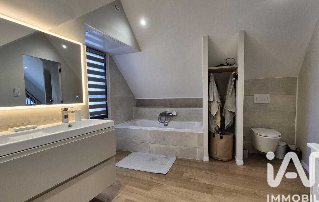 Le dernier niveau est entièrement dédié à l’espace parental, avec une chambre et une salle de bains complète comprenant baignoire, douche et WC.