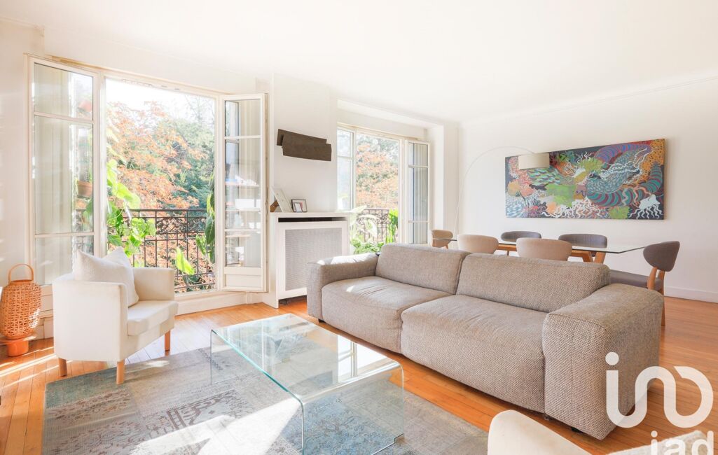 iad France - Pierre-Louis Messager vous propose: Envolée bucolique pour ce magnifique appartement familial de 91m2 embrassant le parc des Buttes Chaumont Paris XIX. Niché au 4 ème étage, avec ascenseur, d'un immeuble post haussmannien (de la rue Manin), vous serez séduit par les volumes et la lumière qui habitent le lieu. Un large vestibule vous accueille et vous invite à découvrir les différentes pièces du bien à commencer par la grande pièce de vie de 30m2, exposée Est, plongeant sur le parc, baignant dans la lumière et les touches végétales. Tout simplement magique ! Côté ouest, deux chambres sur cour (possibilité de revenir sur la configuration initiale de 3 chambres de l'appartement), deux salles d'eau pour plus de confort. Pour finir la visite une cuisine séparée et un toilette lui aussi séparé. Le travail de rénovation de l'appartement apporte une touche contemporaine au lieu. Enfin, un service de gardien et une cave viennent ponctuer la liste des spécificités du bien. Métro ligne 7 Buttes Chaumont à 5mn à pied et ligne 11 Pyrénées à 8mn à pied. Les charges de 400€/mois incluent Chauffage/Ascenseur/ Gardienne/Eau chaude et froide.