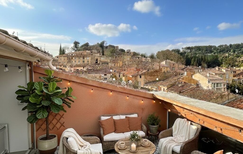 Atout majeur : une magnifique terrasse tropézienne offrant une vue panoramique sur le village.