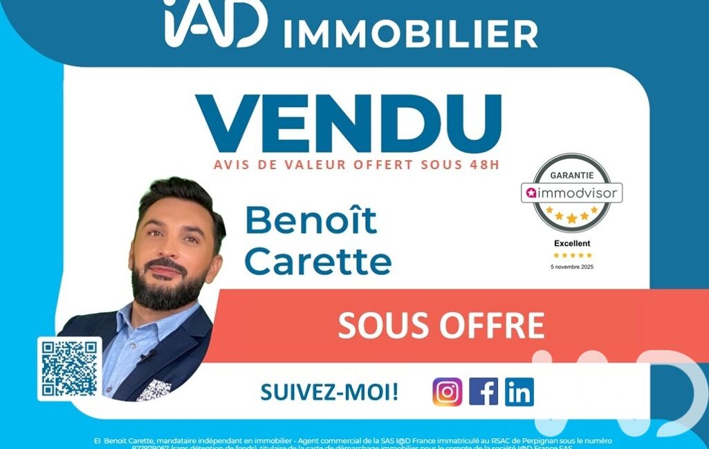 La présente annonce immobilière a été rédigée sous la responsabilité éditoriale de M Benoît Carette mandataire indépendant en immobilier (sans détention de fonds), agent commercial de la SAS I@D France immatriculé au RSAC de PERPIGNAN sous le numéro 827878067, titulaire de la carte de démarchage immobilier pour le compte de la société I@D France SAS.