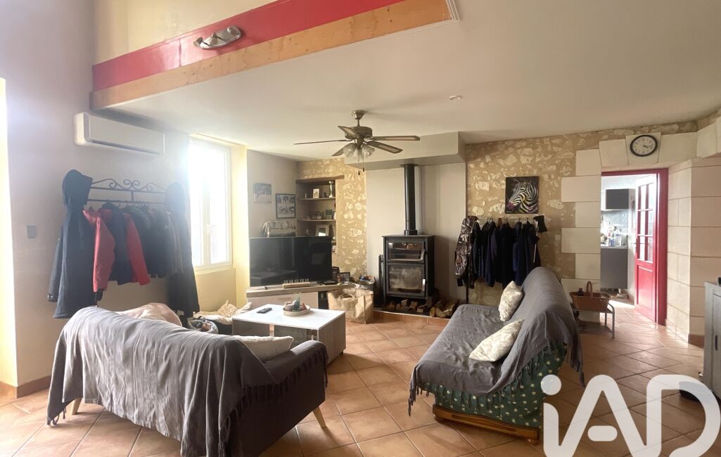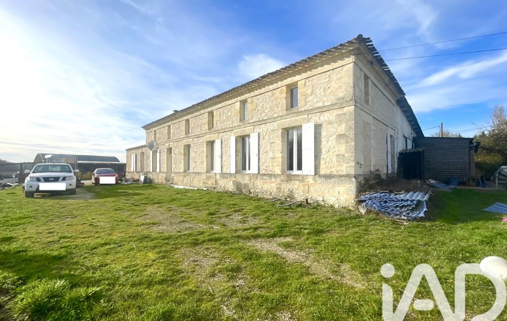 iad France - Delphine Lair vous propose: Girondine en pierres de taille et moellons de 6 pièces avec au rez-de-chaussée une entrée, une cuisine dinatoire indépendante entièrement équipée et aménagée dotée d'une clim réversible, un double séjour équipé d'un poêle à bois/four et d'une clim réversible, deux chambres, une salle d'eau, wc indépendants, un cellier, à l'étage : une mezzanine dessert deux chambres dont une suite parentale avec dressing , une douche et une baignoire avec double vasque, wc indépendants.