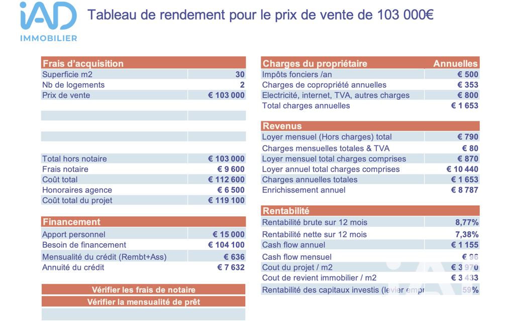 -Bien actuellement loué → revenus immédiats dès l’acquisition.