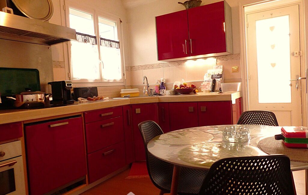 Elle comprend au rez-de-chaussée : entrée; cuisine aménagée et équipée de 11 m²; pièce à vivre lumineuse de 30 m² avec cheminée au foyer fermé et accès sur terrasse exposée Sud Ouest; chambre parquetée de 15 m²; rangement; salle de douche; wc avec lave mains et pièce buanderie-lingerie-dressing (ou bureau indépendant) de 14 m².