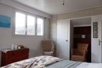 A l'étage, le palier mezzanine dessert 3 chambres de 14 m² chacune (la première est parquetée, la seconde est équipée d'une salle d'eau et d'un placard et la troisième chambre (ou bureau actuel) possède salle d'eau et wc).