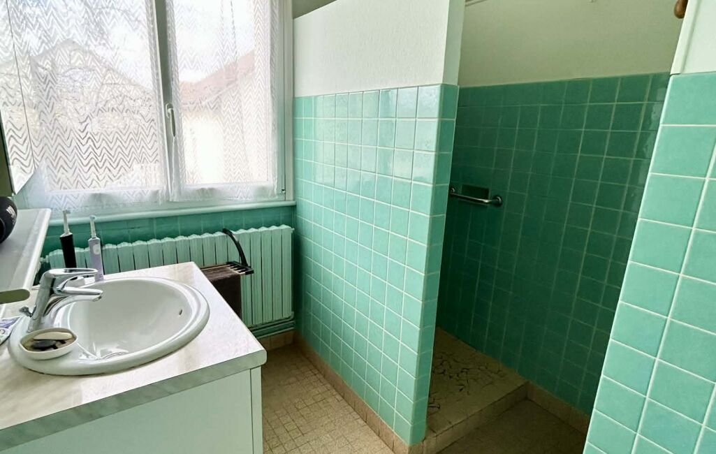 L'étage dispose d'une salle d'eau avec douche, une chambre, un bureau ainsi que des greniers.
