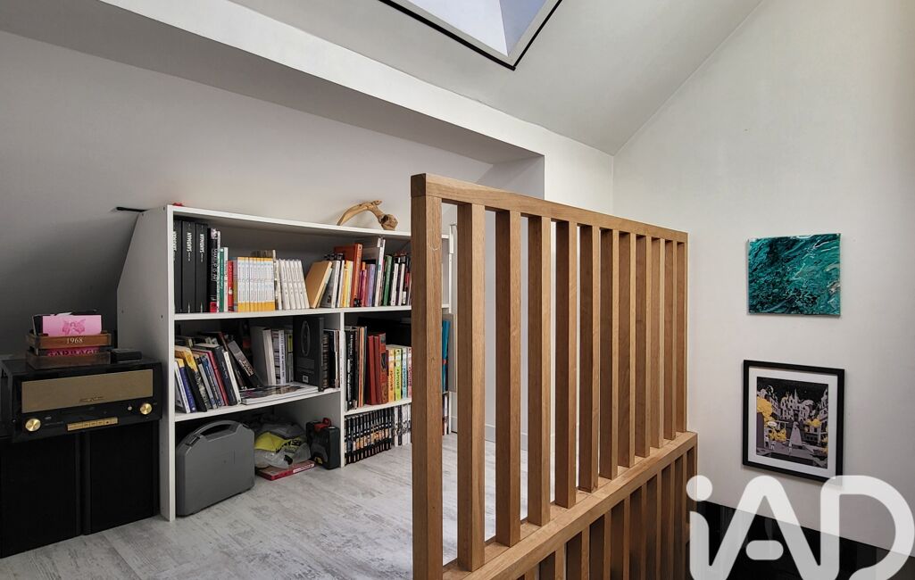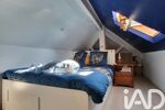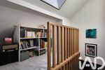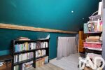 A l'étage, un dégagement avec étagères dessert une chambre mansardée puis une deuxième basse de plafond.