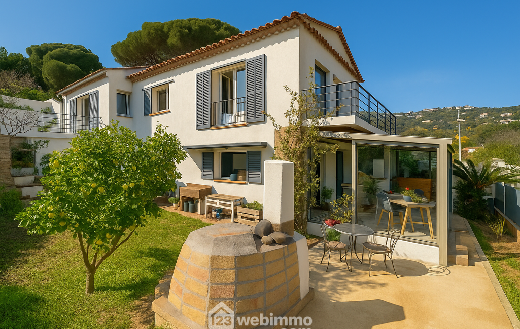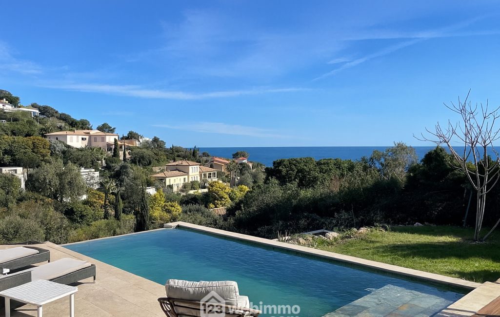 Votre agence 123webimmo l'immobilier au meilleur prix vous présente : Les Issambres, Villa rénovée vue mer à 300 m des plages, piscine et jardin paysager,