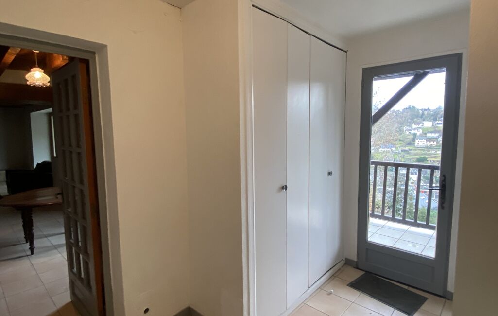 Le séjour donne accès à une véranda chauffée de 18 m² exposée sud-ouest, offrant une vue panoramique sur Tulle, ainsi qu’au balcon.