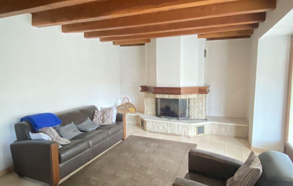•Un séjour de caractère avec pierres et poutres apparentes, équipé d’une cheminée à foyer fermé