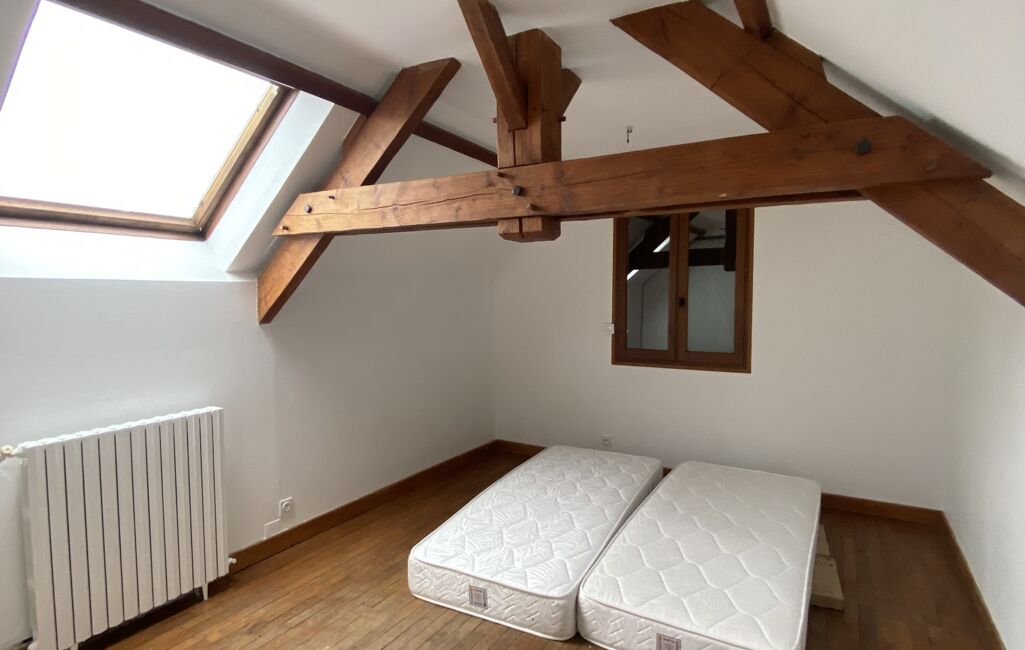 •Une chambre mansardée de 15 m², très lumineuse, avec placard et plancher bois d’origine