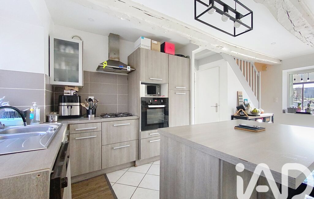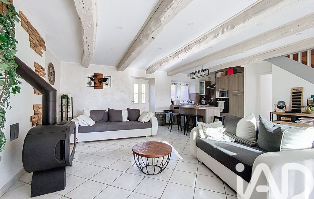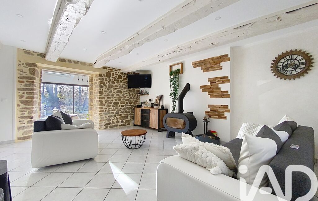 L'entrée dessert un espace buanderie, qui nous mène sur la pièce de vie où le charme à été préservé: pierre et poutres apparentes, poêle à bois pour le côté chaleureux et cosy. Une cuisine dînatoire équipée, pour un esprit convivial et familial.