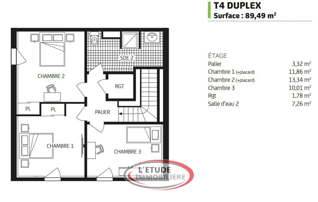 - Surface habitable : 89 m²
