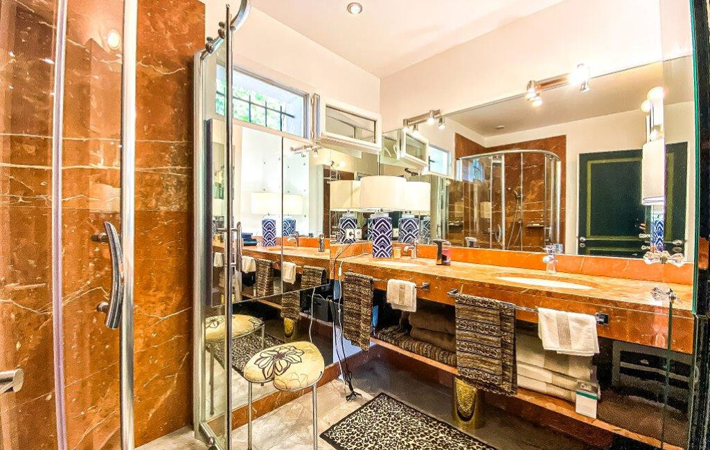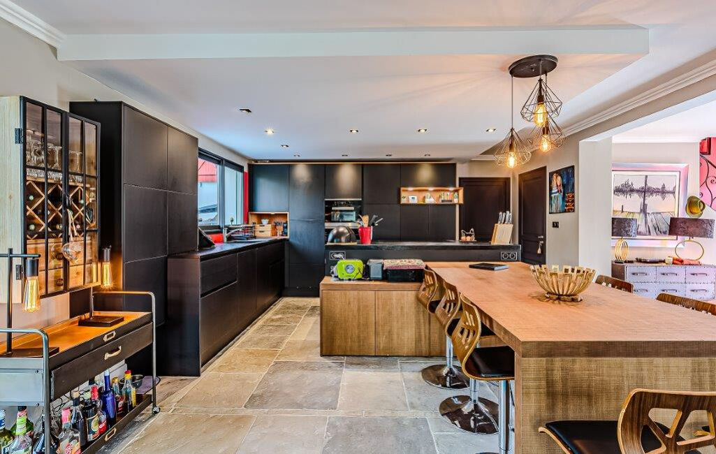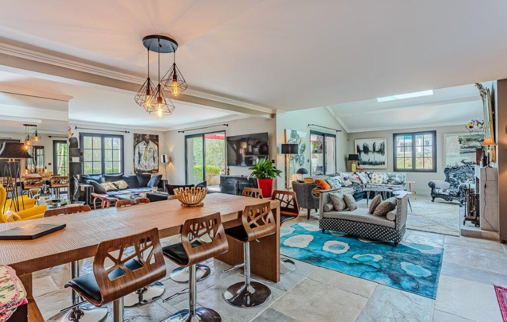 La maison principale de 335 m² offre un spacieux salon lumineux de 80 m² orienté plein sud, avec une belle cheminée et une cuisine haut de gamme. A l'étage, vous trouverez une suite parentale de 35 m², trois chambres, 2 dressings, ainsi que deux salles de bains.