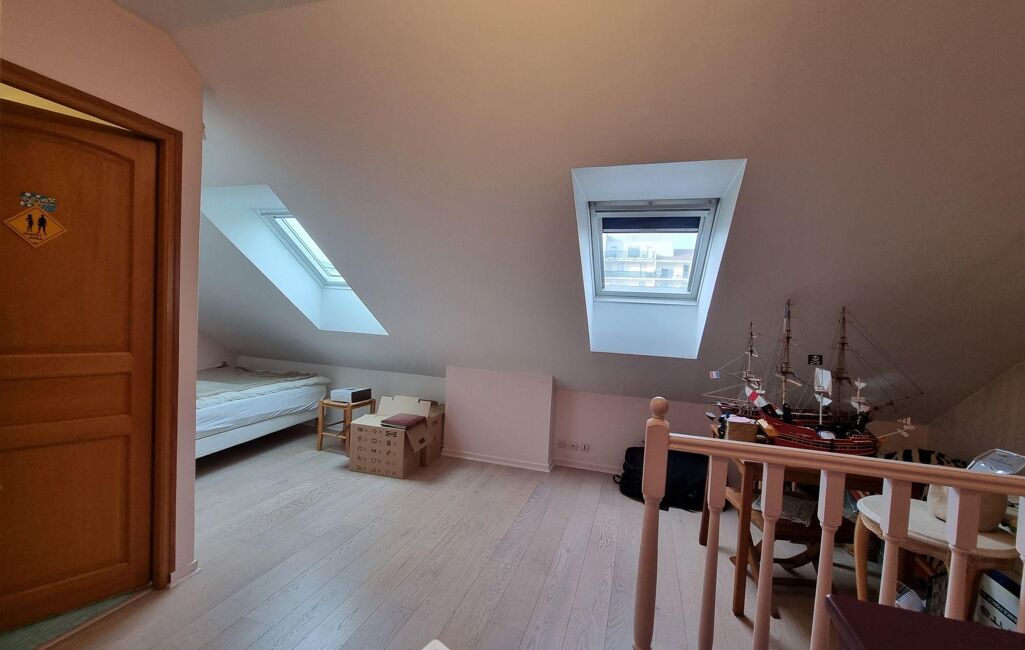 Il comprend : Un séjour lumineux ouvrant sur un balcon exposé sud, une cuisine indépendante pouvant être ouverte, deux chambres à l'étage et un espace bureau pouvant également être transformé en chambre d'enfant, une salle d'eau et 2 WC séparés à chaque niveau.