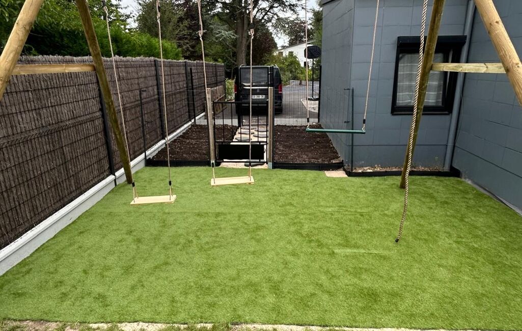 À l’extérieur, le terrain d’environ 1 000 m² s’impose comme une véritable extension de la maison. On y trouve un jardin paysagé, un verger et un potager pour les amateurs de nature, ainsi qu’un espace de jeux idéal pour les enfants. Plusieurs zones de détente permettent de profiter pleinement des beaux jours en famille ou entre amis.