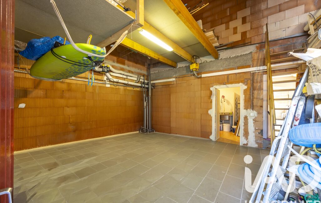 Un grand garage pour deux voitures, avec une hauteur sous plafond de 8m, offrant des possibilités d’aménagement supplémentaires.