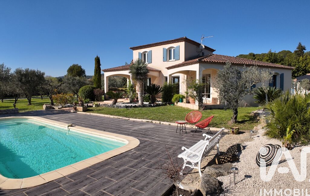 Cette élégante bastide de 2006 est édifiée sur un parc paysager de plus de 3 000 m², sublimé par ses oliviers, cyprès et autres essences méditerranéennes. La propriété bénéficie d’une exposition sud et d’une atmosphère paisible, dans un cadre intimiste à l’abri des regards.