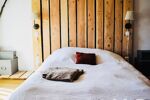 Le chalet s’ouvre sur un vaste salon-séjour lumineux, agrémenté d’une cheminée, créant une atmosphère chaleureuse et conviviale.