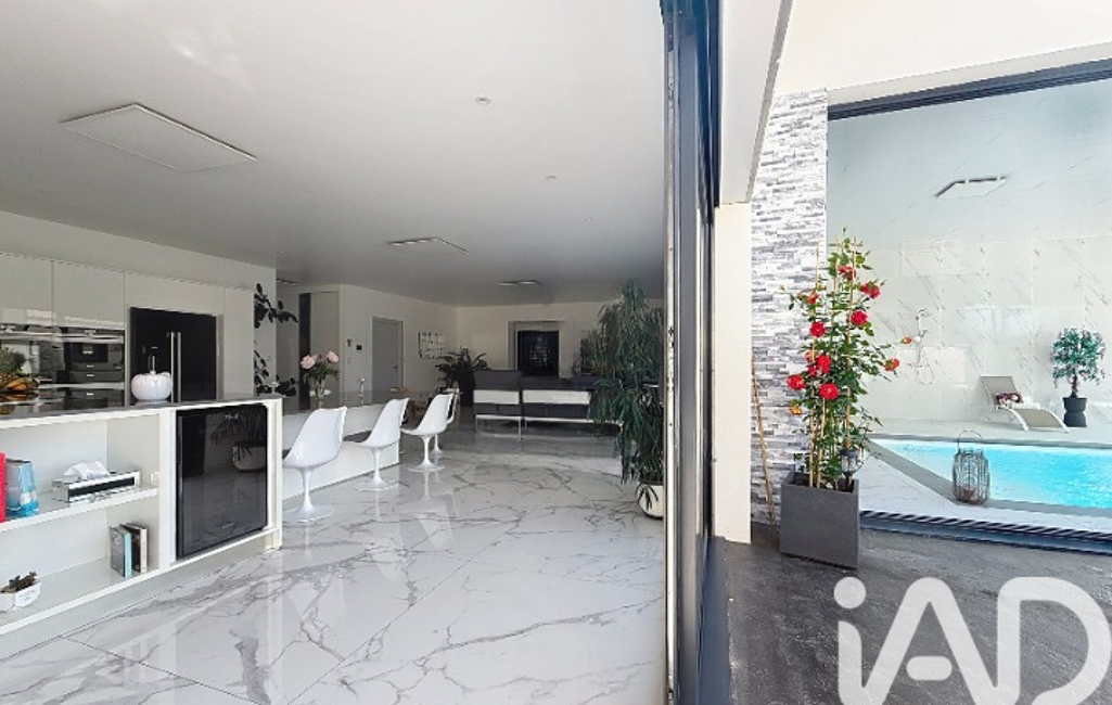 iad France - Rémi Perez vous propose: Villa contemporaine de plain-pied 259 m² 3, construite sur une parcelle quatre faces sans vis-à-vis avec piscine intérieure / extérieure