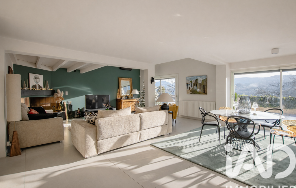 Située sur la commune très recherchée de Vimines, cette somptueuse villa en demi niveaux de 243 m², entièrement rénovée en 2022, offre un cadre de vie rare, alliant volumes, lumière et panorama exceptionnel.