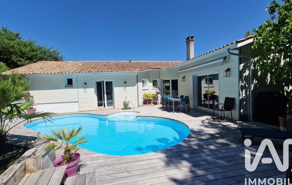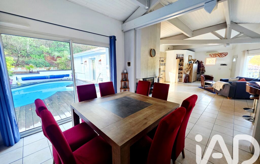 iad France - Julie Glommeau vous propose: Venez découvrir cette maison de 143m2 sur 1077m2 de terrain. Elle se compose d'une pièce de vie avec cuisine ouverte ainsi que d'un espace salon avec cheminée donnant sur la terrasse et la piscine. Pour la partie nuit, vous pourrez découvrir, 3 chambres dont une avec vue sur la piscine, une salle d'eau et 2 wc. Pour profiter des extérieurs, une grande terrasse en bois exotique et une piscine chauffée. Le bel avantage de cette maison, un studio comprenant une chambre, une salle d'eau, un wc et une terrasse privative. Idéal pour la famille ou les amis, Il peut être également loué car il dispose de son entrée indépendante. Pour compléter ce bien, un double garage de 37m2, possibilité de garer plusieurs véhicules sur la parcelle. A seulement 5 min à pieds des commerces et à 8min en voiture de la Dune du Pilat.