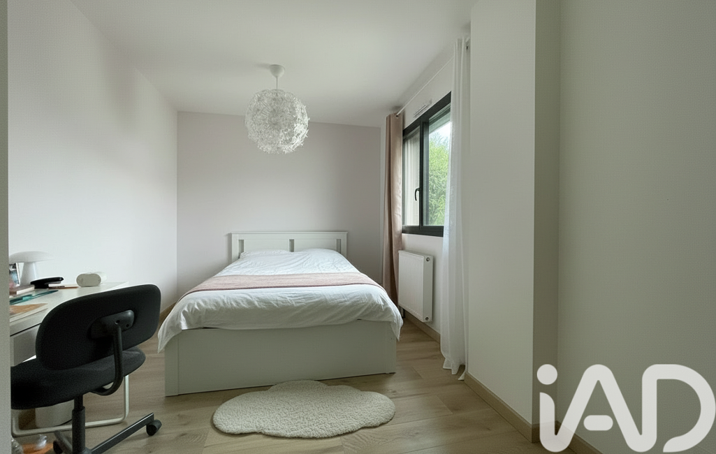 Une chambre, parfaite pour les invités ou pour un bureau, est accompagnée d'une salle de douches avec WC. Le chauffage au sol, alimenté par une pompe à chaleur, garantit une température douce et homogène pour un confort maximal.