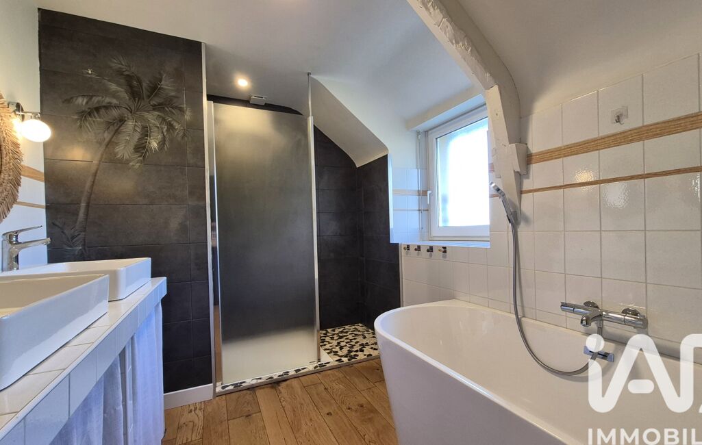 À l’étage, 4 chambres de belles tailles, toutes équipées de placards, s’accompagnent d’une salle de bains avec baignoire et douche, ainsi que d’un WC indépendant.