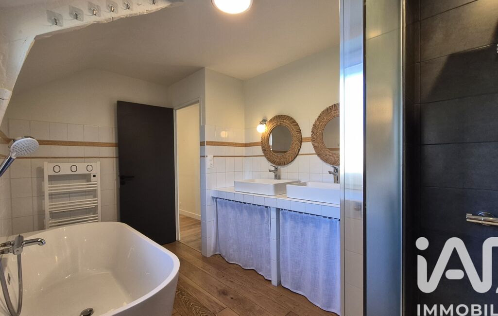 Un locatif indépendant de 80 m² complète cette propriété. Conçu en rez-de-chaussée et étage, il propose au niveau principal une pièce de vie avec coin cuisine et un WC. À l’étage, trois chambres s’ajoutent à une salle de bains et un WC indépendant, offrant une parfaite autonomie pour un revenu locatif, une activité professionnelle ou l’accueil de proches.
